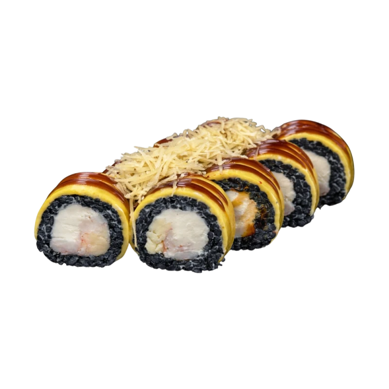 Креветка тигровая, сыр творожный, моцарелла, сыр чеддер, пармезан, унаги, рис, нори