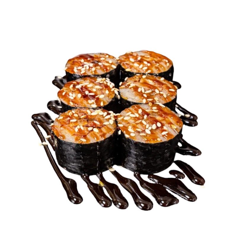 Угорь, соус унаги, кунжут, рис, нори (может содержать мелкие кости)