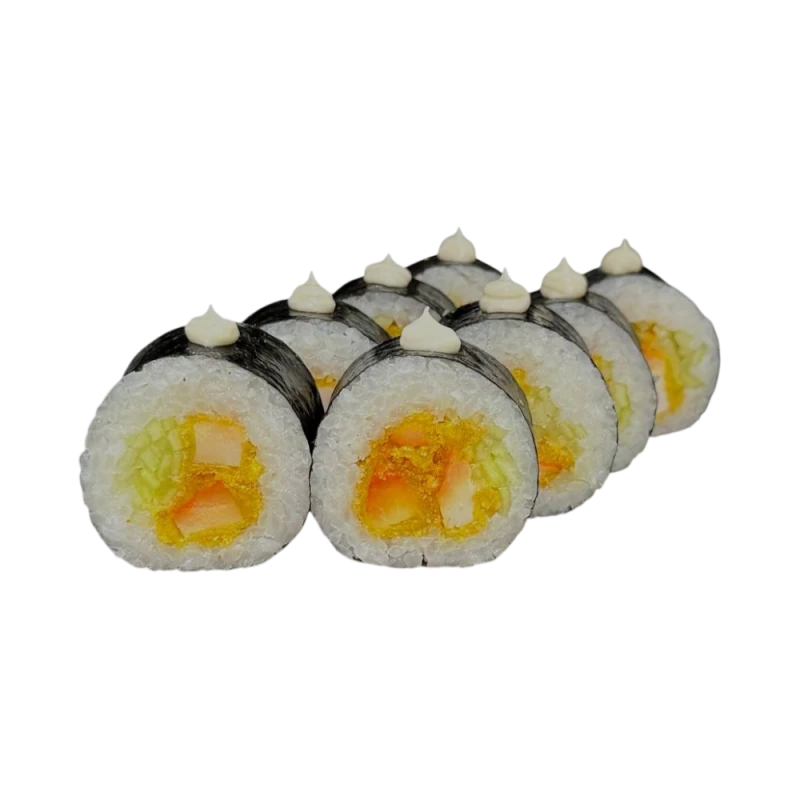 Копчёная куриная грудка в кляре, огурец, рис, нори, белый соус